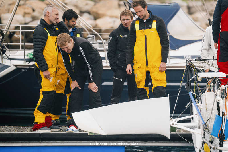 Ostatní týmy se přišly v maríně podívat na zlomené kormidlo.