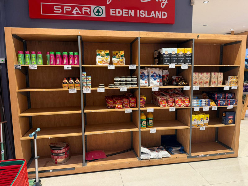 Spar na Eden Island bohatou nabídku nemá. Připomíná mi to potraviny na bulharské vesnici pár dnů před pádem vlády jedné strany.