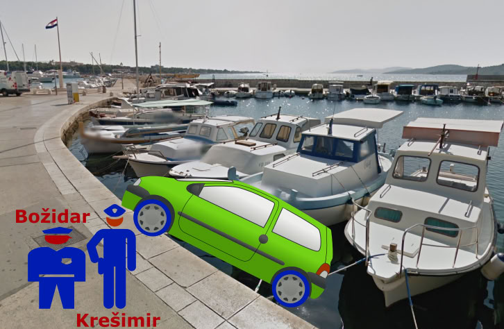 „K dopravní nehodě došlo, když třicetiletá žena zaparkovala auto se šibenickými poznávacími značkami a vozidlo opustila, aniž by učinila veškerá nezbytná opatření, aby zabránila odjezdu vozidla z místa, kde bylo zanecháno. Poté se auto samovolně rozjelo na betonovém povrchu se sklonem až 5 % přes vozovku ulice Obala Matice Hrvatske, přičemž zadní částí spadlo do moře a narazilo do přístupové plošiny na přídi lodi, jejímž majitelem byl 50letý muž. Při dopravní nehodě nebyl nikdo zraněn a materiální škoda se vyšplhala přibližně na 5 500 eur.“