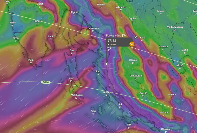 Bóra na severním Jadranu do 80 uzlů, u pobřeží až 100 uzlů. To je dost na to, aby vás méně fortelní jedinci opouštěli po větru a střešní krytina začínala létat.