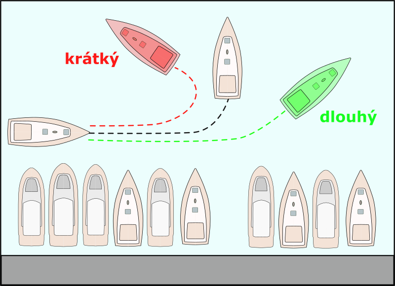 Abych mohl zajet na místo v přístavu mezi jachtami, musím se stočit a začít do místa couvat. Co když to ale nevyjde? Můj odhad byl špatný, jsem moc krátký, nebo naopak dlouhý? Jak to řešit?