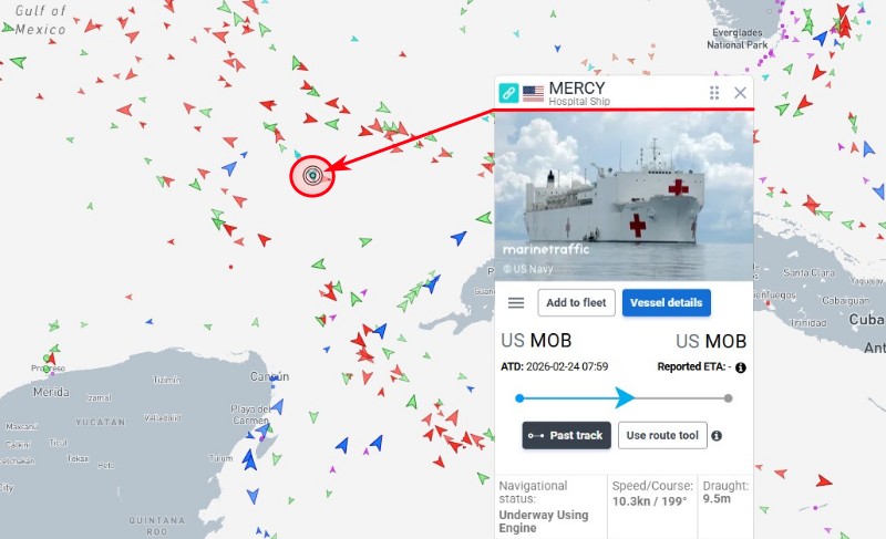 Dnes ale AIS trackery ukazují zneklidňující skutečnost. USNS Mercy nemíří do Golfského proudu a na sever do Grónska, ale pluje mezi Yucatanem a Kubou na jih, směrem na Panamu.