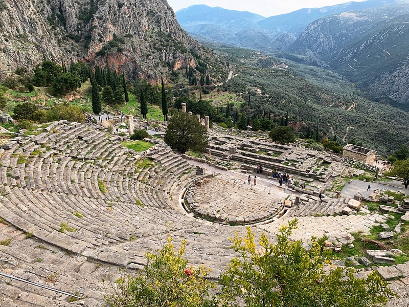 Vydáte-li se do Delf na výlet, doporučuji volit časné jaro, nebo pokročilý podzim. V hlavní sezóně to bude proplétání se lesy selfietyčí pod žhavým řeckým sluncem. Každý schod, který v takových podmínkách vystoupáte, bude vykoupen litrem vašeho potu. Nemáte-li jinou možnost, než sezónu, buďte připraveni vyrazit na otvíračku a běžte nejprve na vykopávky a pak teprve do muzea, tam už vám vedro nebude vadit.