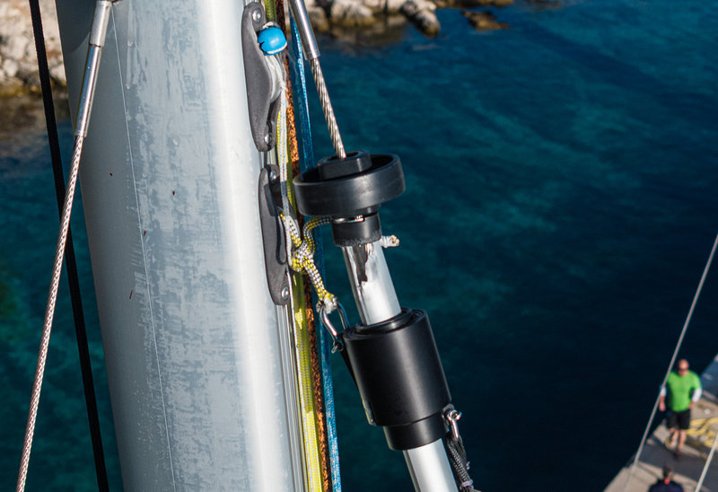 Na fotografiích je vidět poškozený vršek stěhu. Spekulace o tom, proč k poškození stěhu došlo, existují, nic ale zatím není potvrzené. Na vině může být chyba při kompletaci takeláže, příliš dlouhý přední lem geny a kdovíco ještě. To ale v tuto chvíli neřeší hlavní problém závodníků a organizátorů České námořní rallye. Co s tím?
