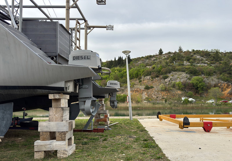 Na katamaran této netradiční konstrukce jsem narazil v Obrovacu na břehu řeky Zrmanji.