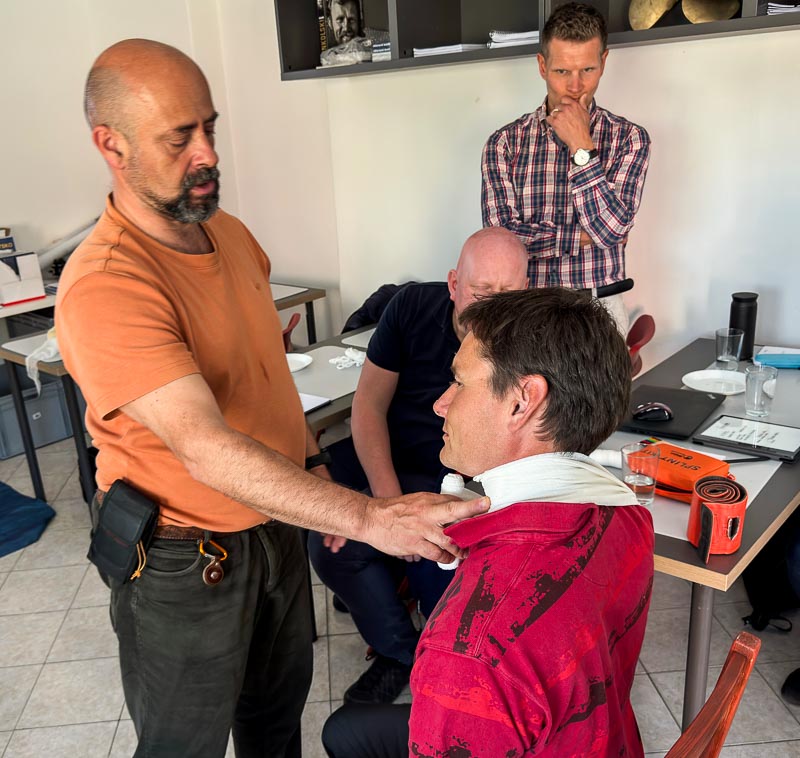 Kromě teorie, která může být u některých přednášejících suchá a obtížně stravitelná, je tento kurz plný praktických ukázek. Vojta Vajdík si přivezl plný kombík pomůcek a pracovat s nimi mohli všichni zúčastnění. Na náhodně vybraných dobrovolnících ukazoval jednotlivá zranění, ke kterým může na lodi dojít a zároveň i jejich řešení. Jedna věc je vidět slide s fotografií a druhou pak je praxe, kdy vidíte, jak se vše dělá, na co si dát pozor, čemu se vyhnout a jak ošetřit poranění jednoduchými pomůckami, které na lodi jsou, nebo mohou být. Vše si osahat.