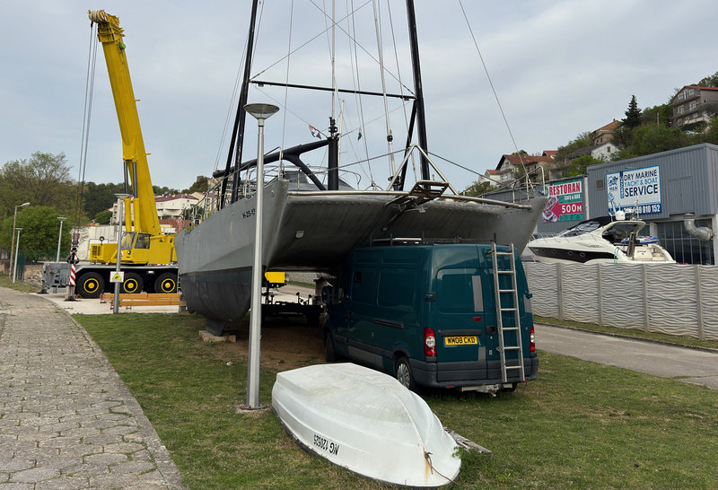 Na katamaran této netradiční konstrukce jsem narazil v Obrovacu na břehu řeky Zrmanji.