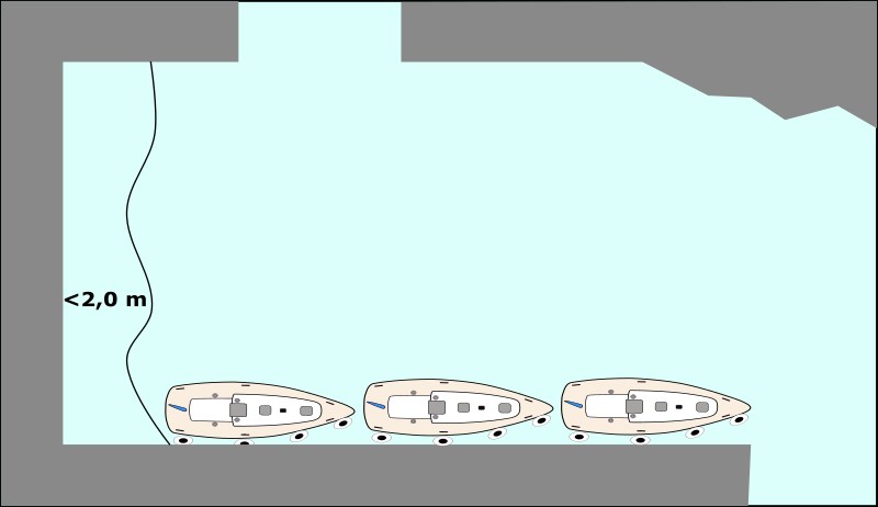 Malý přístavní bazén. Je dobře krytý, nepříliš široký vjezd je otočen k severovýchodu. U přístavní zdi se stojí bokem. Ačkoli většina lodí, které sem zajedou, zajíždějí na přední chod, vždy k molu couvám. Chci mít klidné spaní.