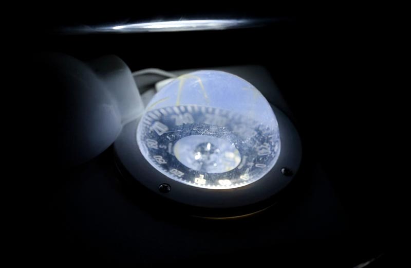 Dan Přívara vyplul s posádkou na kurzu na noční plavbu, sundal kryt z kompasu a bylo po nočním vidění. Na kompas bylo krásně vidět, čísla nádherně čitelná, kompas svítil jak lampička na nočním stolku. Samozřejmě bíle. Takový kompas je k ničemu. Takový, nebo žádný, to je v noci stejné. Jedinou možností je zakrýt ho krytem.