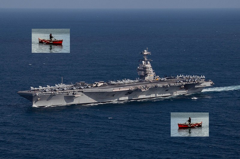 Kolem lodi je vyhlášen perimetr, ve kterém je zakázaná plavba. S rostoucí agresí amerického státu rostou samozřejmě i obavy o bezpečnost. Letadlovka za 13 mld. dolarů je lákavým cílem.