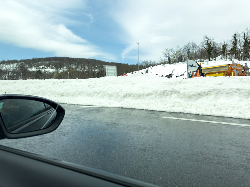 V Chorvatsku před Malou Kapelou byly vyfrézované hory sněhu u svodidel, na parkovištích měly ještě frézy plno práce. Sníh ležel až k tunelu Sveti rok. Dole v Zadaru teplota kolem 13°C.