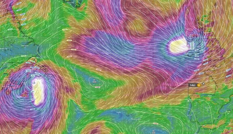 Bouře ale nemusí zasahovat jen tropické oblasti kontinentů. Podívejte se na příští středu odpoledne na západě Irska. Pobřeží by mohl bičovat vítr o rychlosti 100 uzlů v poryvech, vlny budou dosahovat výšky přes 7 metrů.