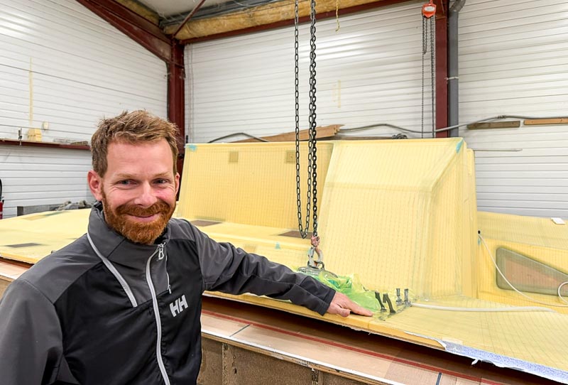 Paluba nového závodního speciálu Class40 Milana Koláčka byla vytažena z formy. Je velká jak kurt na badminton. Na podzim na ní pojede Milan sólo přes Atlantik.